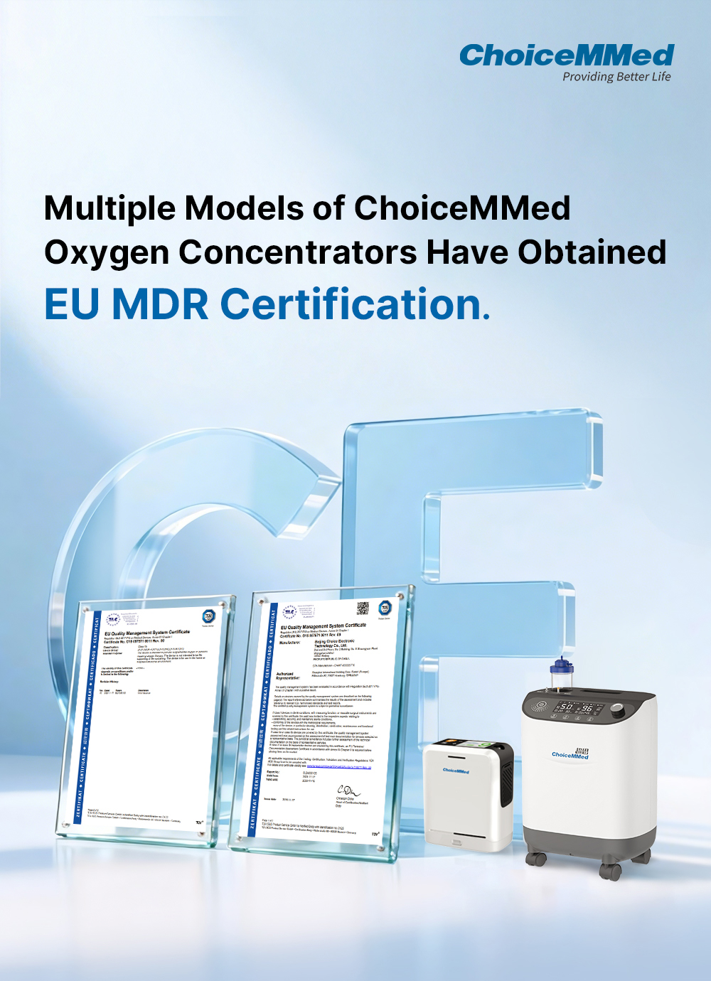 Recently, several models of ChoiceMMed oxygen concentrators have successfully obtained certification under the European Union's new Medical Device Regulation(CE-MDR). This achievement marks a critical passport for ChoiceMMed oxygen concentrators to enter the EU market and once again validates that ChoiceMMed's technical standards and quality management system align with high international benchmarks.